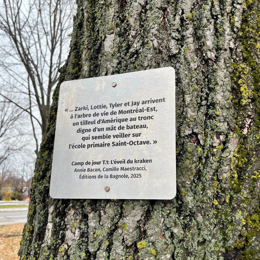 Je vous avais parlé il y a quelques semaines de ce projet fou de la ville de Montréal-Est de mettre une plaque sur le Tilleur d’Amérique que j’ai identifié comme étant un « Arbre de vie » dans mon roman Camp de jour.